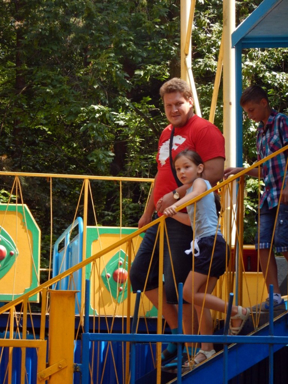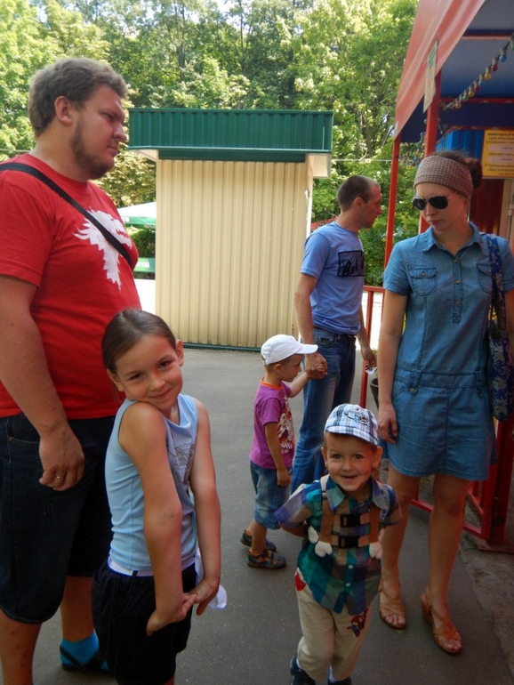 Отдых многодетных семейРаз обещали Мелании, что в следующий поход в парк она покатается на взрослых аттракционах, то уговорили папу пойти с нами.