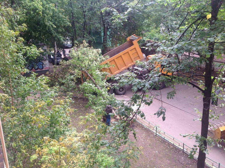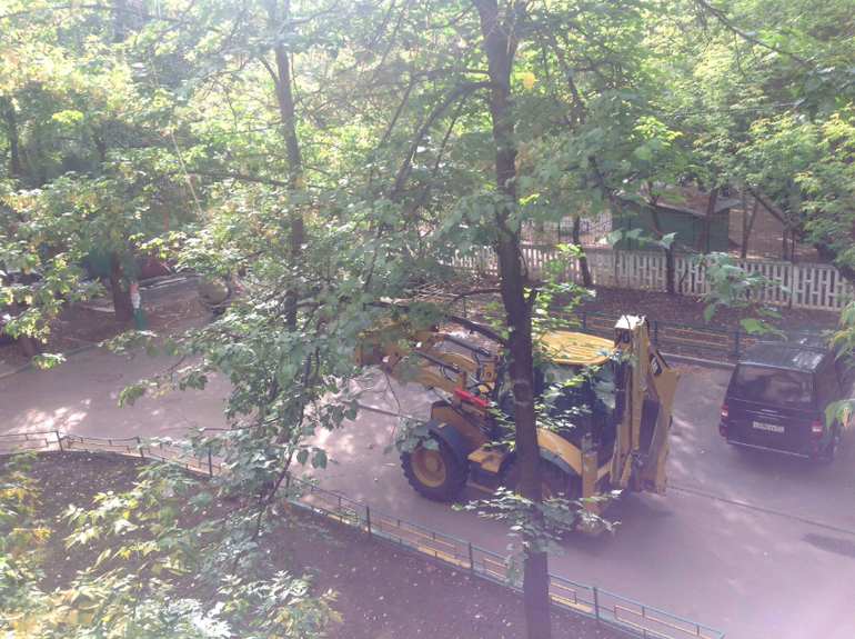 А у нас во дворе "горе водитель "маленького трактира проезжая по асфальтированной дорожке и проделывая манёвры , забыл опустить ковш , результат , сломал два дерева и сдвинуться не мог так как если он опустил бы ковш деревья упали бы на припаркованные машины на стоянке . Падая дерево задело провода, но подпёртая ковшом дерево окончательно не рухнуло, бегая вокруг этого всего , доблестные работники говорили, "- ну никто же не видел этого" пол дома наблюдало эту картину, пока все владельцы пытались выгнать свои машины , а трактор закрыл всем выезд и нам тоже, а именно на нашу машину и пришлось бы падение дерева( , пока дождались службу по " деревьями " много времени прошло" приехали и спилили два больших красивых дерева - списав всё на типа " Аварийные деревья" , не прошло и одного дня как в месте где ездил ещё этот тракторист было повреждена корневая система другого дерева которое благополучно упало на машину (( владелец мама 4 детей , для которой машина очень нужна , возить всех детей на занятия, и такая халатность произошла ((( приехали опять и всё срубили ... Итог минус 3 дерева из- за "Горе тракториста" за два дня!!