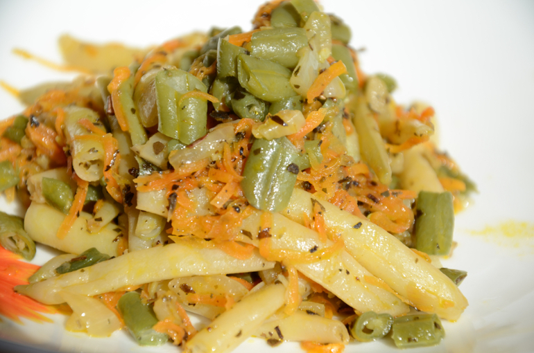 3) Когда фасоль готова, добавляем её в нашу морковно-луковую смесь, накрываем крышкой и хорошенько протушиваем до готовности. В это время можно добавить растительного масла, если овощная смесь получилась просто «водянистой», и досаливаем по вкусу.