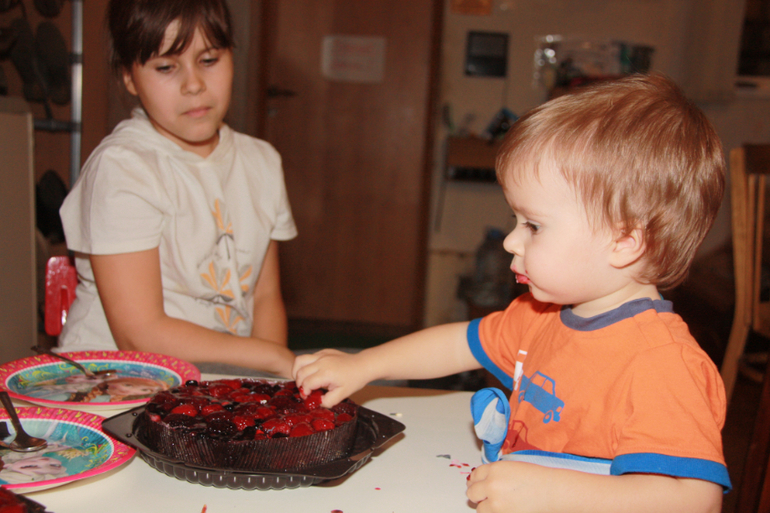 А Вовчик тем временем потихоньку малинку с пирога таскал себе в рот:)