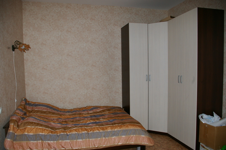 Нет, кровать не входит. Ну это еще фотки почему-то темноватые получились, на деле все светлее:) В любом случае, еще хорошее настольное освещение будем делать