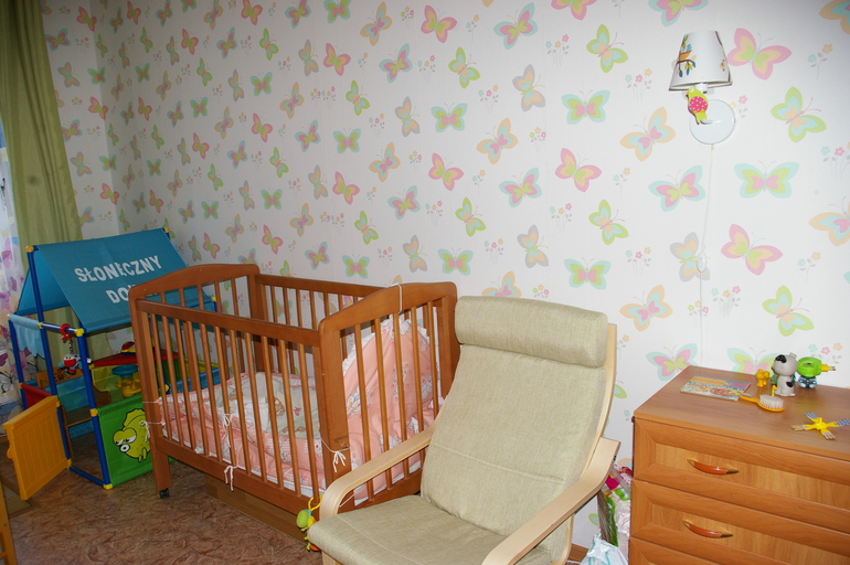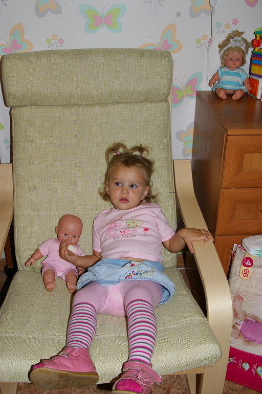 Женечке в комнату купили кресло с качающейся спинкой - это если вдруг мне нужно будет к ней ночью встать:) Ее комната тоже почти закончена, только муж еще полочку для пластилина/красок/книжек сделает: