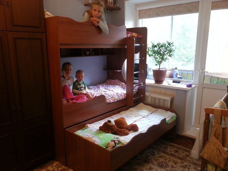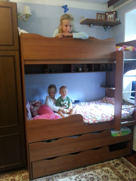 Lenorka и Компании четырехспальную кровать, т.к. комната у нас одна, а детей 4, и их надо как-то размещать на ближайшие 3 года точно (ждем субсидию, но с нашим государством ждать еще можно очень долго).