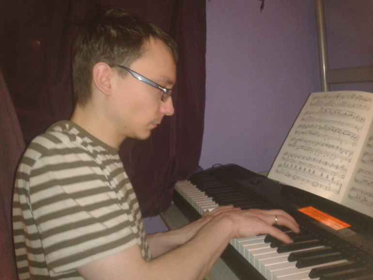 и муж,за любимым занятием.( когда мама свои любимые дела убирает))))