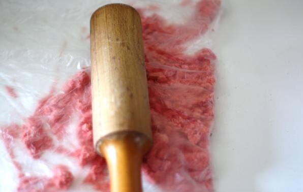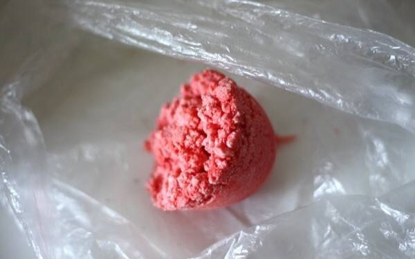 Высушенная соль схватывается одним куском. Его нужно размолоть, а затем просеять. Самый простой вариант - пакет, скалка и небольшое сито. Если соль ещё влажная, необходимо досушить.
