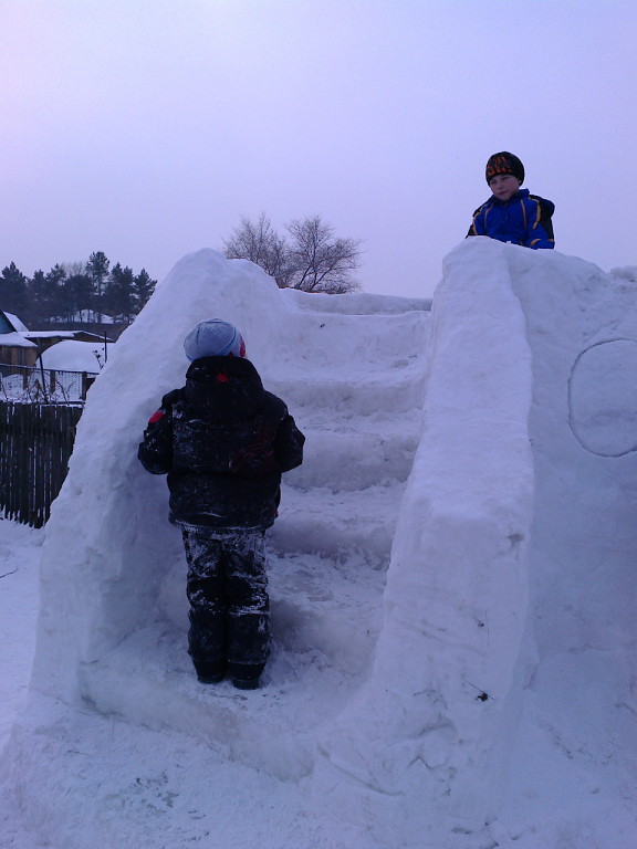 Шикарная горка! Какие вы молодцы! Какой труд на благо деток! Сама задумываюсь о подобном сооружении около нашего дома, ваш пост вдохновил ещё больше! Очень жду снега))))