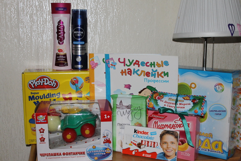 Вы даже про родителей не забыли, низкий вам поклон за такие чудесные подарки. Все подарки припрятала до нового года.... Ждем новый год)))))