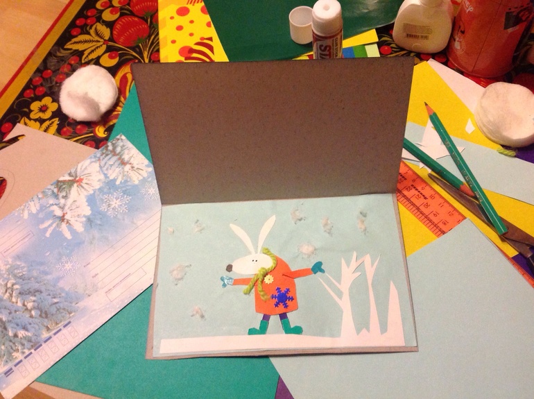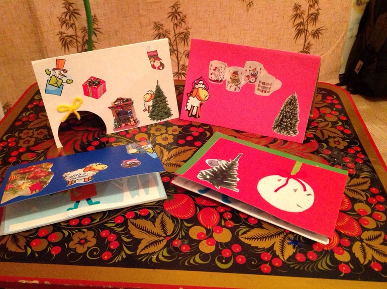Да именно так , дети сами делают поздравительные открытки и кидают их в новогодний почтовый ящик )) Подстраховались конечно ( сделали на всякий случай открытки лишние )