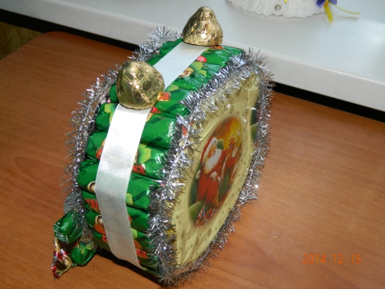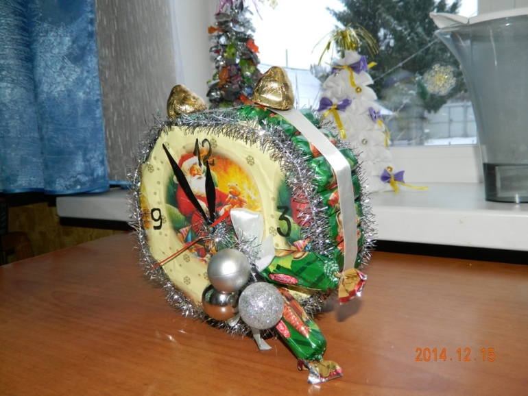 А это мы из коробочки конфет смастерили часики для моей сестренки. Очень надеюсь, что она оценит!!! Кстати, деткам так понравилось их делать, что просят еще одни, для себя смастерить!