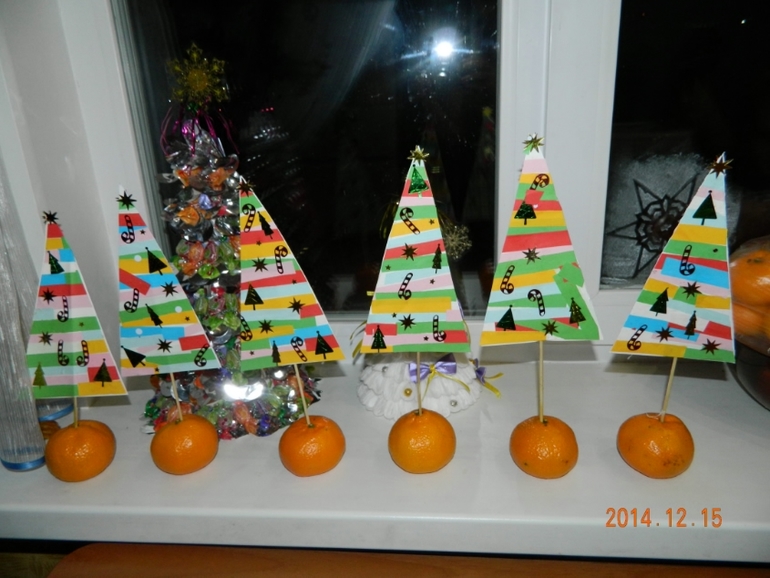 А сегодня мы будем делать мандариновые елочки из цветных полосочек. Завтра покажу!!!