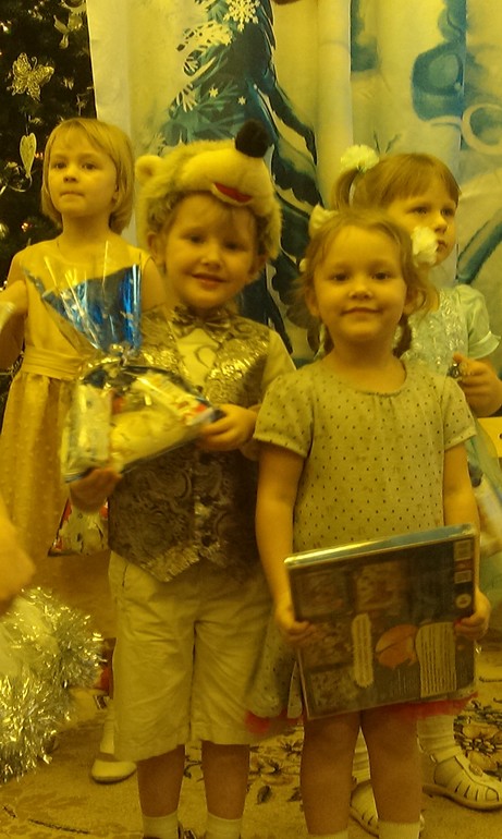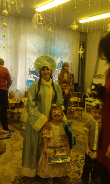 Сначала утренник был у Маруси. Организация никакая, сюжет был понятен только тем кто вообще читал сценарий, но зато каждый ребенок рассказывает стих дедушке Морозу. Пусть непонятно и неслышно, но каждый это сделал. Ну кроме тех кто вообще испугался или застеснялся. Меня там еще и попросили быть снегурочкой. На репетиции я естественно ни на одной не была. Дети зовут снегурочку и тут выхожу я. Все сидят на стульчиках, мой ребенок медленно встает, делает пару шагов, потом опять садиться, свыкается с происходящем))) Но было весело, импровизация, путаница и все такое. Старалась все легко воспринять и с юмором, все равно главное что дети запомнят - это подарок и дедушку мороза.