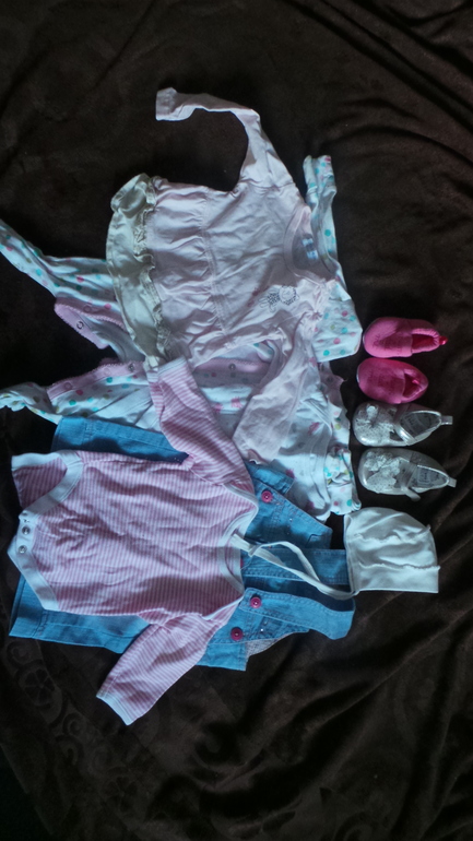 Мамы, отдаю вещи все в хорошем состоянии: Бодики, слипы, платье с ласинами, комбез джинсовый, 2 пары тапочек, носки в большом кол-ве. 2 шапочки.