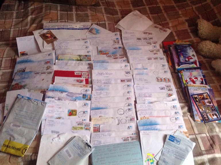 Сработало простое " Правило 6 рукопожатий" - Серёжка очень хотел получить настоящие письмо в конверте!!! И Вот что у нас получилось!)))) это такое чувство окружения тебя теплом и удивительное волшебство которое исполнилось под Новый год ! И мы конечно постараемся всем ответить поблагодарить и отправить письмо ! Многим уже ответили и отправили открытки , !!!