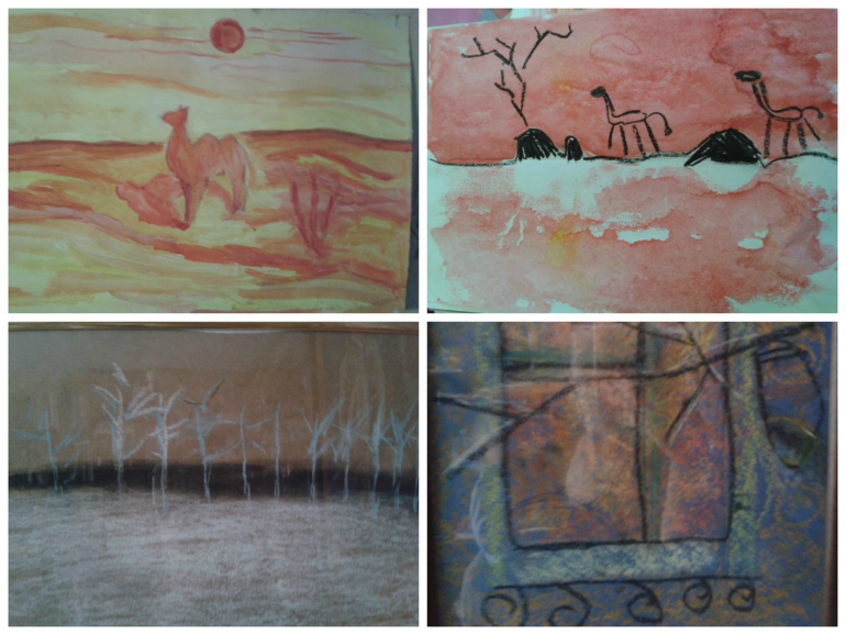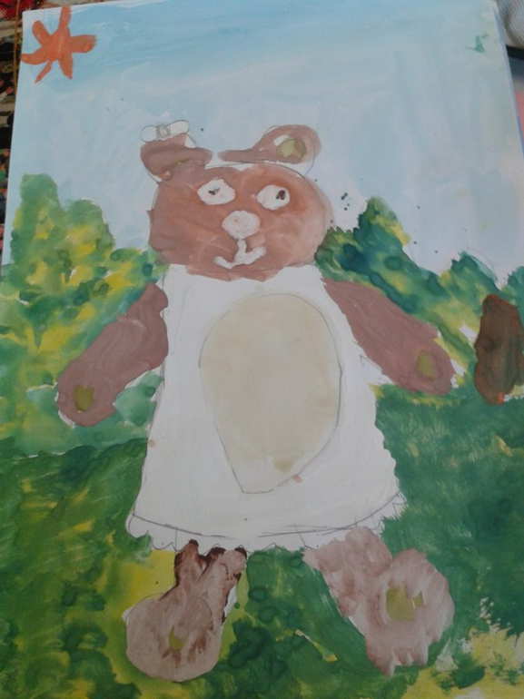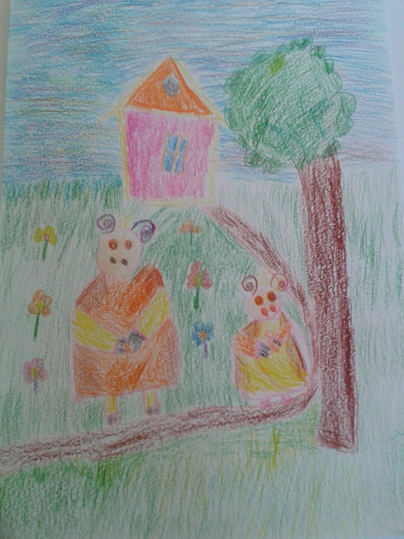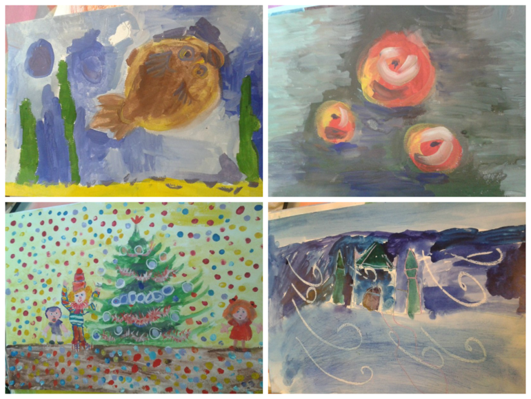 на второй картине рисовала моя старшая дочка.дома. ей было 6-7 лет.