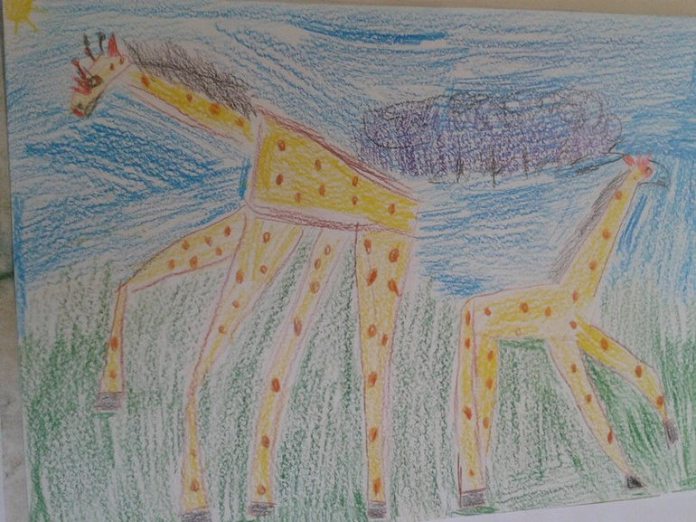 жираф.- работа логопеду.нарисовать животное. рассказать о нем. изобрасить его жестами-телом.