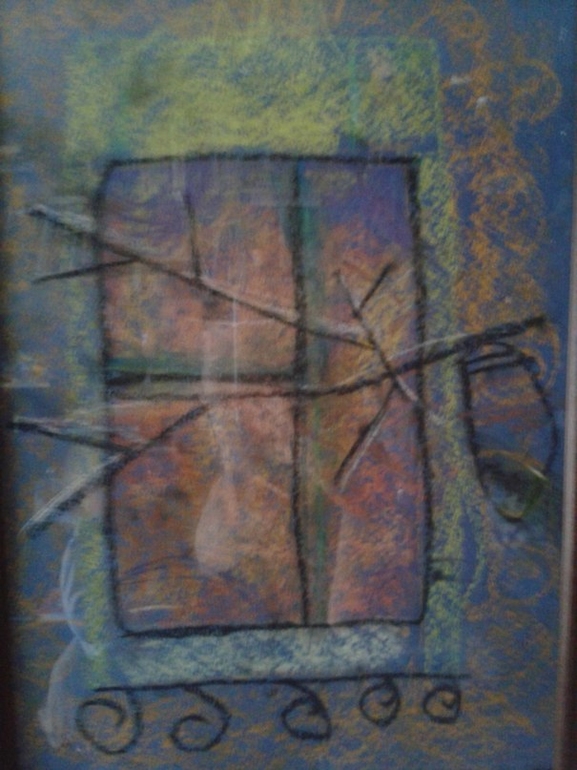 и на четвертой картине тоже старшая дочка.пастель.7 лет.это окно. висит у нас в рамке.
