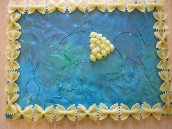 9. Водоросли выложите рожками и обычными макаронами. Все элементы картины готовы.