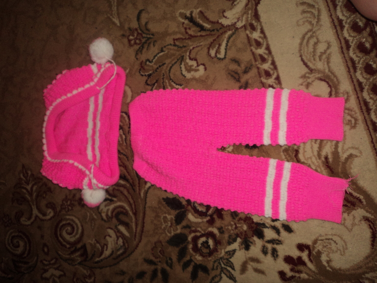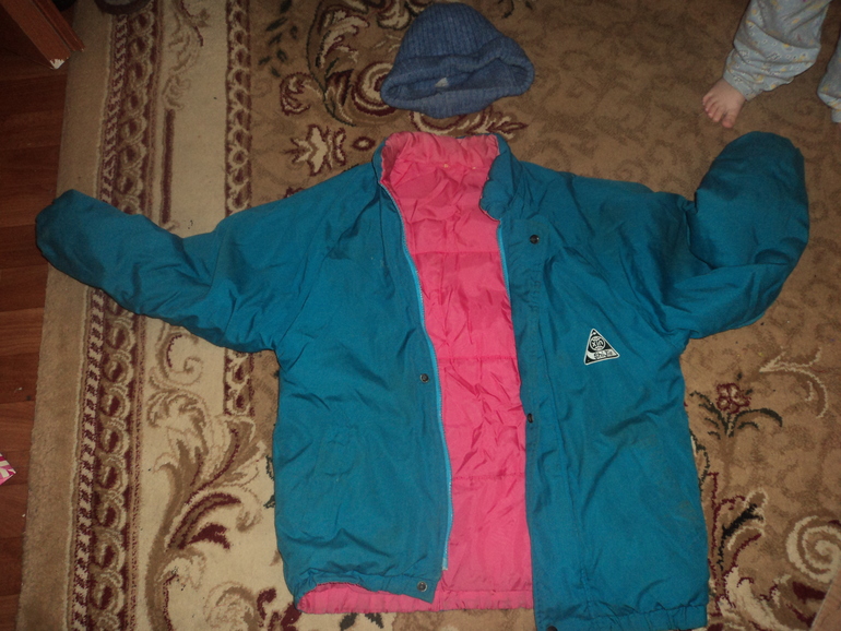 шапка и куртка лет на 10-12. Куртка двухсторонняя, может для дачи сгодится.