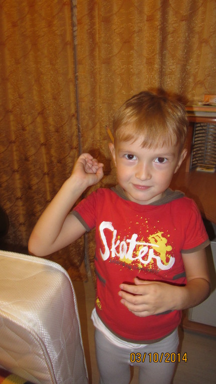 парень с характером и своей точкой зрения на все сказанное ему)) всегда все перепроверит, на слово верит редко) скажешь ему, Артем нет горячей воды, он все равно пойдет и убедится, что не дурят его))) иногда это выводит меня из равновесия.... но в целом способный мальчишка)) но, чувствую, что в школе даст мне жару со своим упрямством )) не так давно начал зубы менять))) выпал первый молочный зубик, растим новенький)