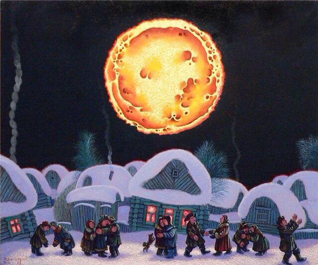 Считалось, что в Масленицу, а особенно на Лакомку, нужно есть столько, сколько душе угодно, или, как говорили в народе, "сколько раз собака хвостом махнет ".