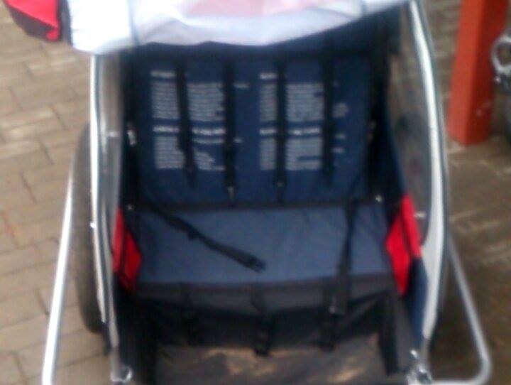 Да конкретно эта для перевозки двоих детей. Можно к велику крепить, можно третье колесо поставить и как коляской пользоваться. Сзади еще багажник есть. Я ее с рук покупала в отличном состоянии. Новые они дорогие. В Питере уж точно выбор есть, у нас же я нашла простенькую и без третьего колеса за 350 евро.