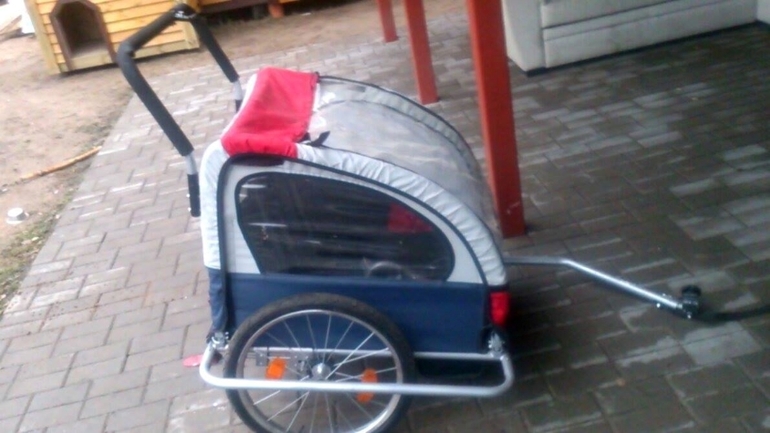 И у нас такой прицеп на даче) Я с ним после родов все лето худела, кстати помещали четырех детей.