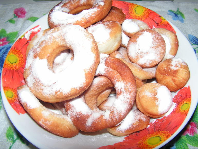 Меню большой семьиНу или как их там, колечки. Пока девчонки были в школе, мы с мальчишками вот что сделали. На фото то, что осталось. А ещё в духовке два рулета с яблоком. Всё постное.
