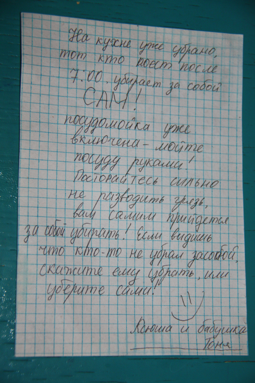 мне тоже такую нужно написать на кухне... и повесить при входе, а то как только все уберёшь, сразу либо есть кого-то приспичит, либо ещё что-то...