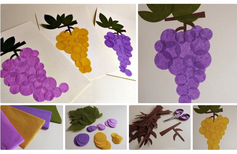 Виноград из ватных дисков ( бумаги или картона)