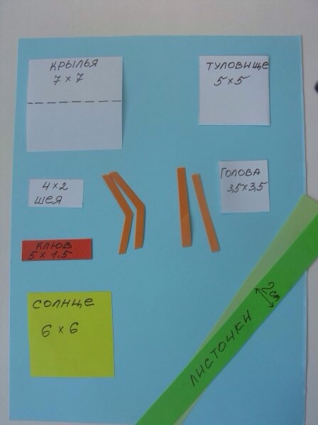 Далее делаем надрезы на пачке кружков наискось.Чтоб сделать объемную круглую шейку, употребляем карандаш для подкрутки. Остается вырезать дополнительные детали - клюв, ноги, листья и собрать все детали на цветном фоне.