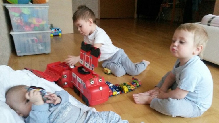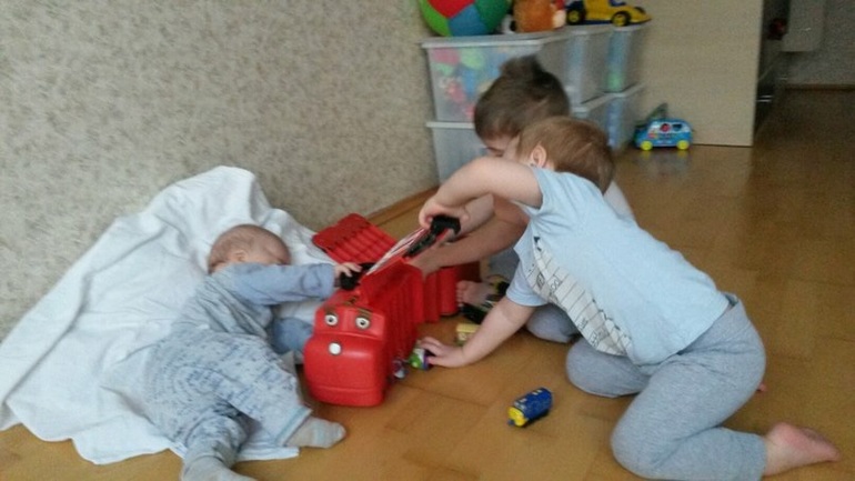 Уже сейчас, хоть Тимке всего пять месяцев, он влился в коллектив,и как мы все шутим,у нас Тимур и его команда. Они прекрасно играют друг с другом,немного разгрузились отношения среднего и старшего. Переходим все понемногу на летний режим, мальчишки стали чаще прогуливать сад, наверное Лева опять " возьмет отпуск" в садике, дабы в сад ходит только после волшебного пендаля. Но мы проводим время тем не менее с пользой: спорт, бассейн с сауной, конструирование, гости и т.п. Не буду писать много слов,просто фото моей мафии сегодня утром...