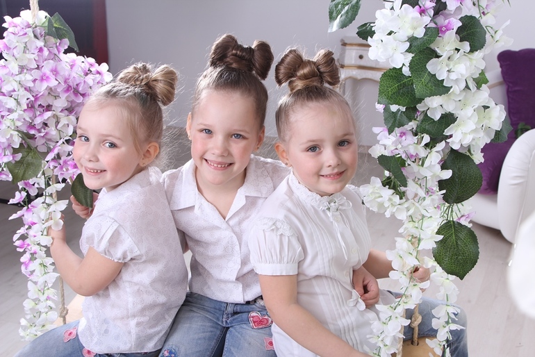 Сын и тройняшки!!! Вот это да!!! Здоррво!!! Очееь вы красивые и фото необыкновенные!