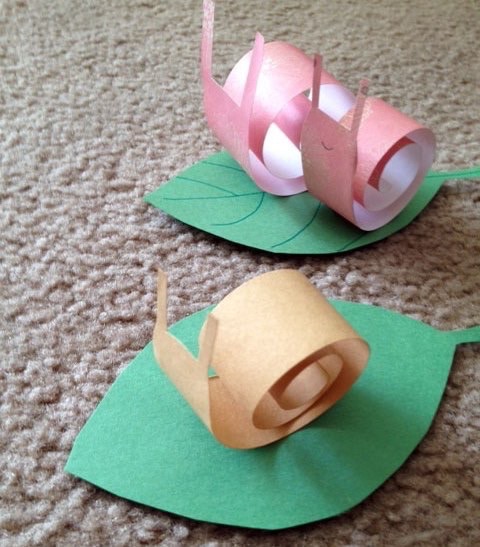 Улитка ! Чтобы сделать такую симпатичную улитку, надо вырезать длинную полоску бумаги шириной несколько сантиметров. С одного конца полоски не забудьте вырезать рожки. Осталось только свернуть полоску бумаги спиралью, и улитка готова.