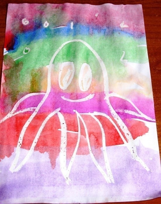 Очень простая техника рисования, которая приводит детей в восторг. Ведь рисунок появляется волшебным образом прямо на глазах. Разве не волшебство?