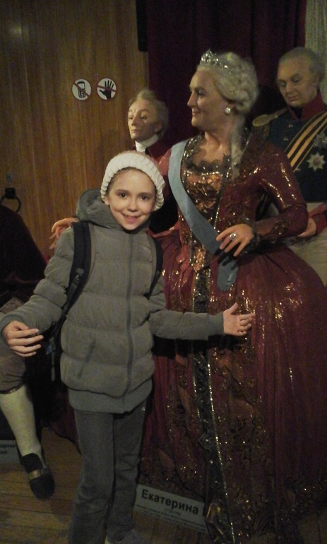 С Екатериной Великой.)))Музей восковых фигур.