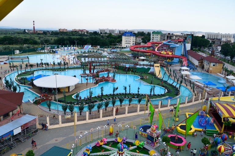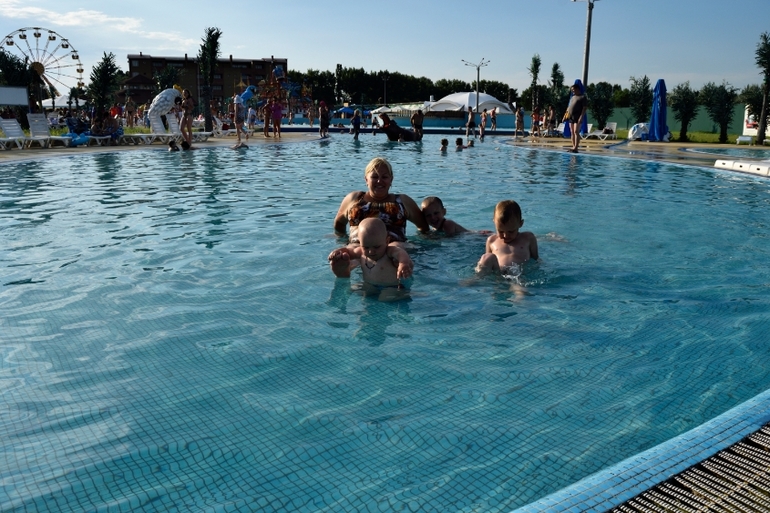 В 10 минутах ходьбы от нашего пристанища располагался большой аквапарк, ну нельзя было в него не сходить. Были мы вечером, народу все равно много, очереди в кассы километровые. С детьми там., конечно, мега тяжело, глаз да глаз... но им раздолье и восторг )))