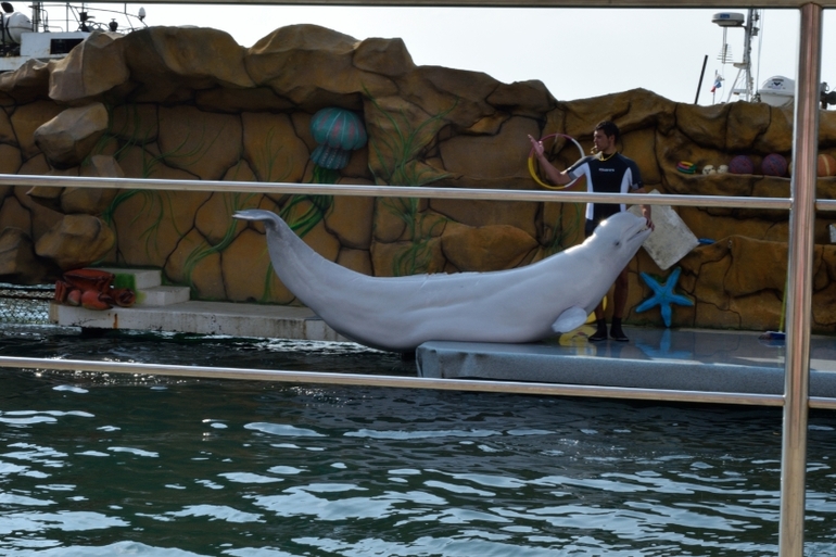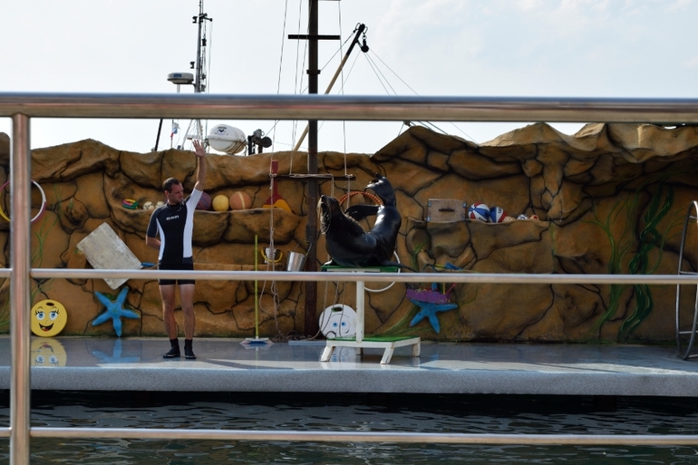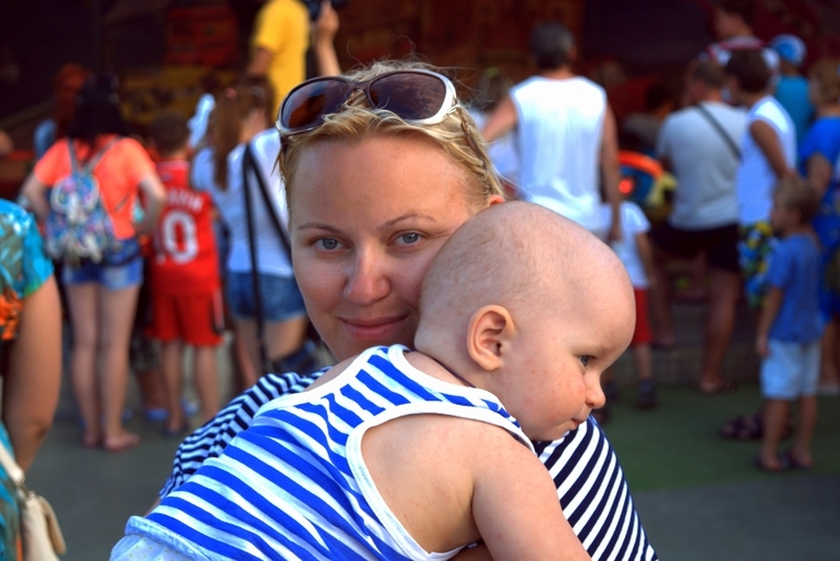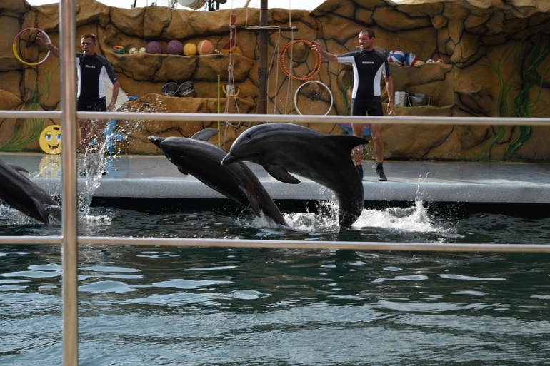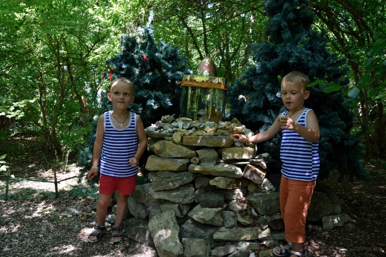 Со второй недели, когда хворь отступила и маршрут море-номер изрядно поднадоел, мы решили чуток попутешествовать. Первым номер нашей программы был Утришский дельфинарий. Нам, как обычно, несказанно повезло: во время представления влил такой ливень, просто стеной. Но артисты - молодцы, программу отыграли ))) А пацаны старшие все представление рыдали то поочереди, то дуэтом... Толи испугались, толи спать хотел - они не признались )))