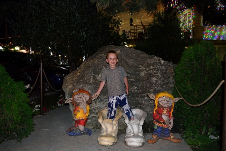 Еще отдельно коснусь уровня обслуживания и перейдем к культурной программе нашей поездки ))) Сами хозяева - муж и жена, довольно приветливые и общительные люди, весьма колоритная пара. В столовой работает до жути неприветливая и неприятная девушка (не помню, как зовут ее) и дочка хозяев - гораздо более коммуникабельная барышня. Персонал хоз блока-терпимо, но я на них в обиде: не дали мне сушилку ))) У нас веревки были натянуты между перил, на номер приходилось 2-3 метровых веревки. Я говорю, дайте мне сушилку (сушилки там есть и много) у меня 3 детей, много белья. Не положено говорят! Вы на 2м этаже живете, сушилки для первого. Вот это "неположено" меня до сих пор возмущает больше всего ))) Белье нам меняли по требованию, тк детей рвало. Полотенце было выдано 1 - толи для рук, толи для ног, и его не меняли ни разу. Уборку в номере не проводили ни разу, 1 раз подмели возле номера. Во дворе есть площадка с качельками и песком, поиграть детям есть где. Иногда они гуляли сами, я их видела с балкона (территория базы закрытая) Пару раз за время нашего пребывания (13 дней) для детей устраивали праздники с аниматорами. Ребятня отрывалась, мои отказывались участвовать в сейшенах.