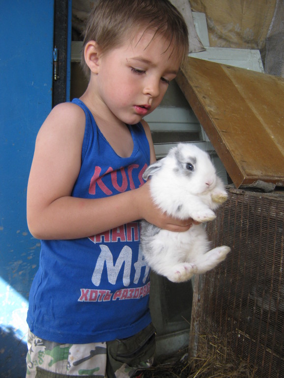 в хозяйстве у них живут куры, кролики, козы и поросята.