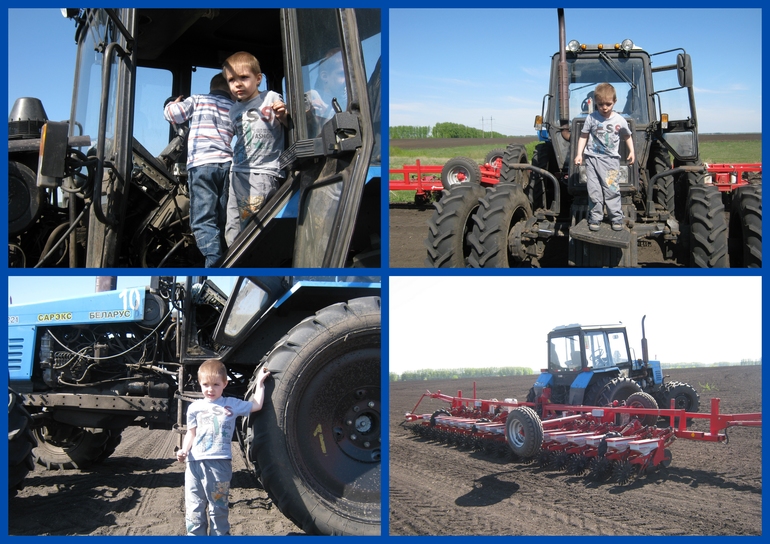 дедушка работает на тракторе, брал мальчишек с собой в поле.