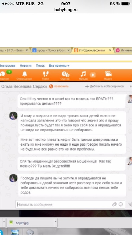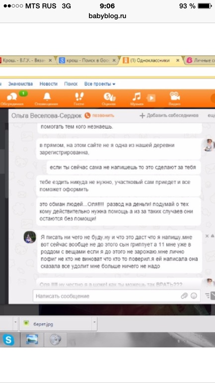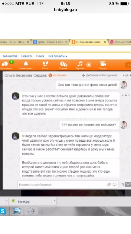 Девочки, хоть кому то, кто посылал помощь маме Оли, посылки с вещами возвращались? Оля говорит, что так как это не она размещает посты, а это делает другая особа прикрываясь честным именем матери героини, то она как честный человек в недоумении все отправляет обратно адресатам. Мне вот просто интересно есть такие? Я возмущена до глубины корней волос своих. Я эту мадам очень хорошо знаю. На вопрос Оля чем тебе помочь, у тебя беда проблемы, человек сказал ты о чем, все хорошо, выше есть переписка, все отражено собственно....