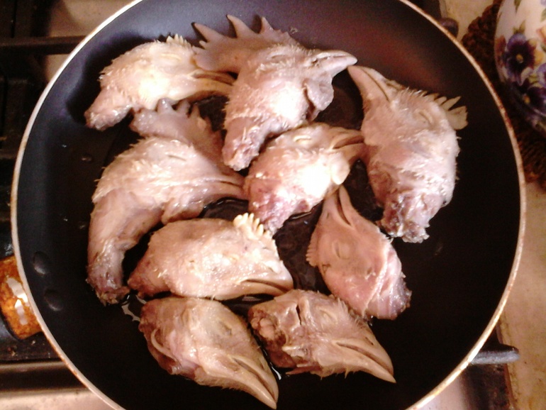 Мама держит хозяйство, то от кур и уток , точнее вместе с ними перепадают и головы и ноги, я это в отдельные пакеты и в морозилку, потом добавляю несколько наборов в холодец, сразу и навар и запах, но головы и ноги у нас не едят, я то могу, ножки погрызть, но когда варю холодец , там и другого хватает, люблю свиные ножки. А в этих головах даже не знаю что есть, шею если только, внутри ж одни кости, глаза, это не мое. Обычно заливаю все эти ноги и головы бульоном и отвожу этот холодец папе на дачу, они такое любят. А если честно, то когда прочитала пост, то подумала, что это шутка))