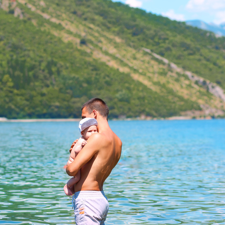 Этого папу наблюдала в Черногории, пока мама спала на пляже, он невероятно трогательно возился с малышом) Не устояла, сняла эту чудную семью)