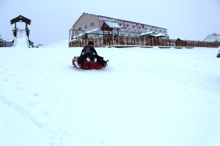 Природа хорошая, с климатом тоже вполне - нет изнуряющей южной жары, но и в то же время летом очень хорошо. Если разрешено купаться, то прямо на берегу озера расположена, если нет - можно довольствоваться прогулками на лодке, катере. Взять квадроцикл например. Зимой тоже хорошо - большая горка для лыж и ватрушек.