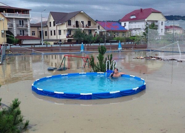 Пострадавших действительно жалко...Но... Вообще, я этот пост в разделе "юмор" поместила;) Со смыслом, что русские, если приехали отдыхать, им наводнение не помеха)