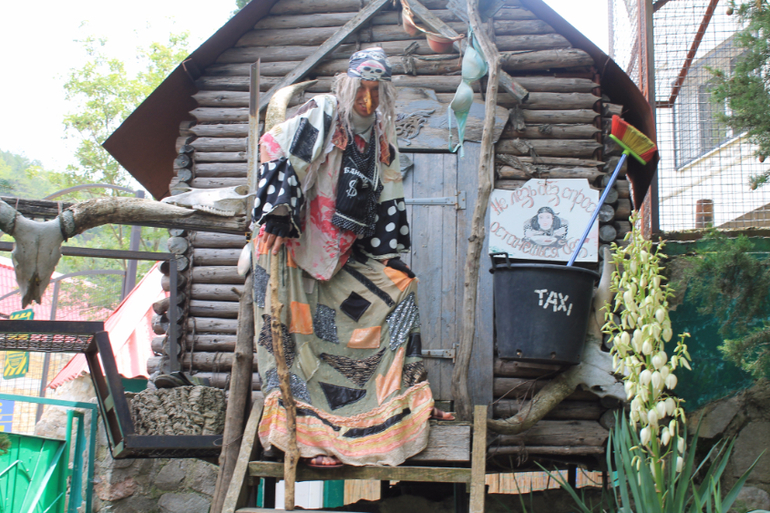 При входе в зоопарк встречают посетителей важные пеликаны.Дальше располагается избушка Бабы Яги.Всех она встречает,выкрикивает разные шутки,но и подкалывает взрослых,в общем такая старушку-веселушка)))))))