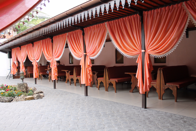 Нагулявшись и проглодавшись отправились в кафе Ханский дворик,вот тут то мы и ощутили на себе восточную гостеприимность.Еда была приготовлена,а не подогрета,чебуреки ну очень больших размерах,вкусные))Мне очень понравился чай травами,медом и лимоном.Подкрепившись продолжали путешествие в пещерный город Чуфут-Кале.С трёх сторон он окружен обрывами.Некоторое время там находилась столица Крымского ханства.Описать словами всю красоту открывающую сверху не могу,думаю и фото не передаст,но очень красиво,поверьте.