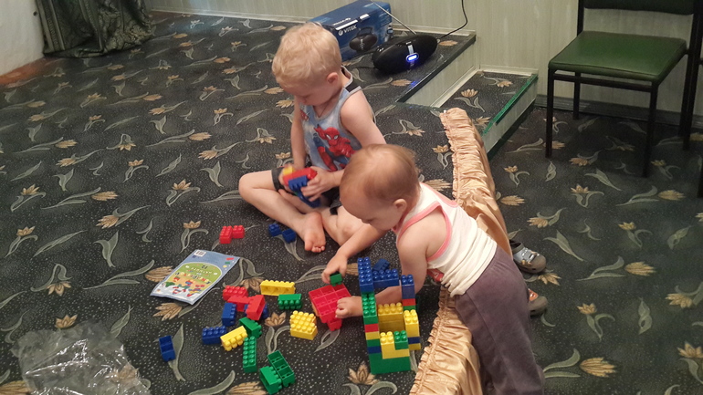 Бытовые условия на 2+ (по 5-ти бальной системе). Небольшая комнатенка около 11-12кв.м. Совмещенный санузел с корытом жестяным, небольшой открытый балкончик (который я практически не открывала из-за страха за детей). Две кровати (хотя когда покупала путевку на младшую дочь выбирала из опций на сайте одну большую кровать), пришлось сдвинуть и дыру забить двумя одеялами. Везде ковролин лежит жуткой расцветки, кроме санузла, там просто кафельная плитка.