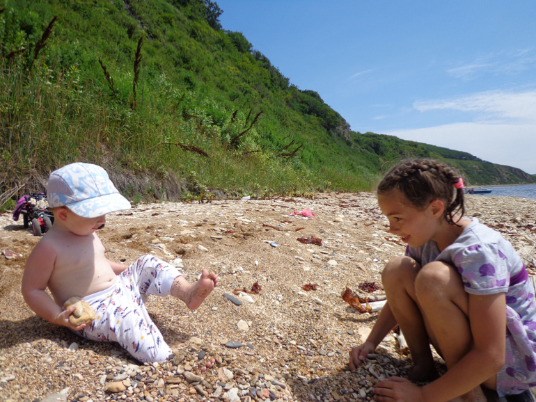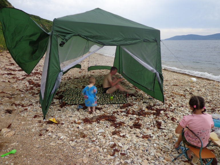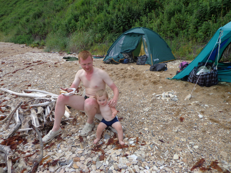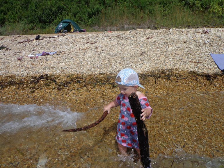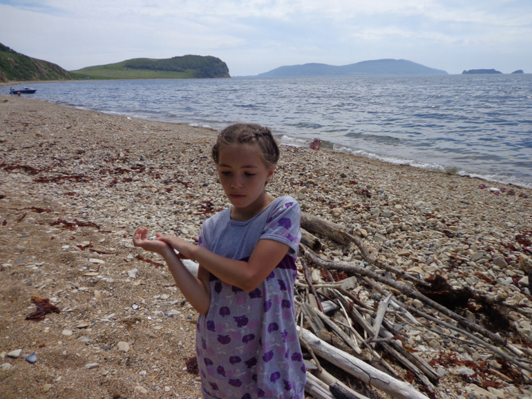 У мужа 2 августа день рождение, решили отметить на море с ночевкой. Поплыли на остров Путятин. В первый раз я плыла на лодке, было очень страшно, боюсь я плавать на лодке. Раньше на барже плавали, но чтобы добраться до хорошей бухты, нужно проплыть и я решилась, всю дорогу сидела закрыв глаза и держалась за поручень. У лодки мотор не сильный, плыть 40 минут, но оно того стоило, нашли красивую бухту, где нет отдыхающих.