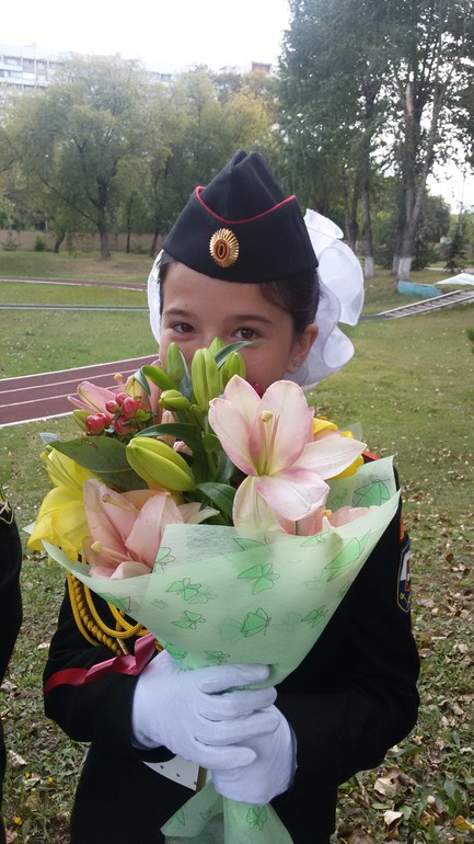 Очень милая девочка! Обаятельная))) И без зазнайства (это я по поводу ее принадлежности к Кадетскому корпусу).Умничка! Удачи ей, успешной учебы, здоровья и всего самого прекрасного в учебном году!
